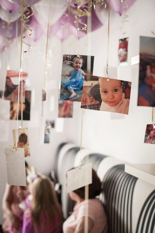 Mural de fotos: já pensou que dá para fazer um mural suspenso com os balões de hélio? Ideia genial!