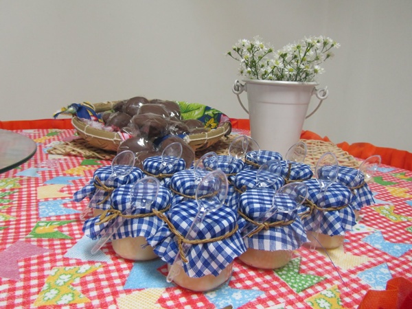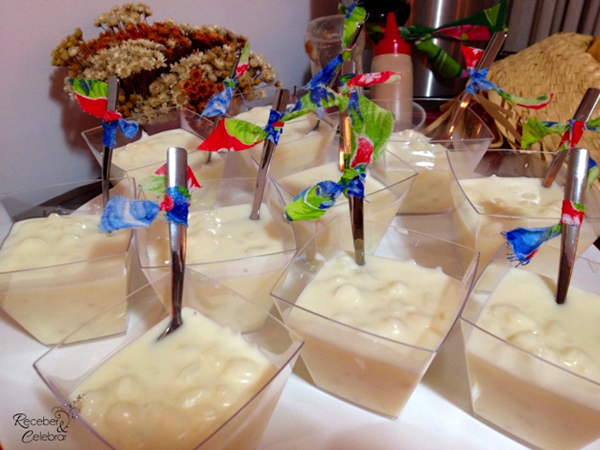 Trapinhos na canjica: amarre pedaços de trapos na colherzinha da canjica para deixá-la mais charmosa.