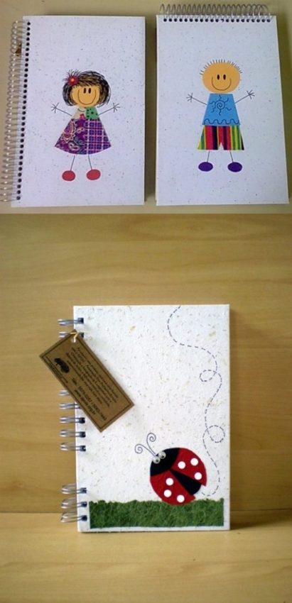 Bloquinhos de papel reciclado: esses foram feitos por uma ONG que ajuda jovens com deficiência intelectual (na verdade, os próprios jovens ajudam na fabricação dos produtos!). Se preferir colocar a mão na massa e fazer a lembrancinha de aniversário do filhote, aqui você encontra um tutorial.