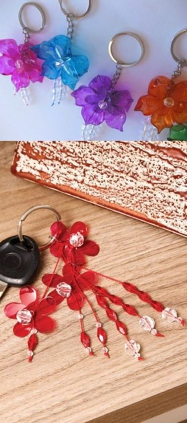 Chaveiro: feito com garrafa PET! Para ver o passo-a-passo, clique aqui.