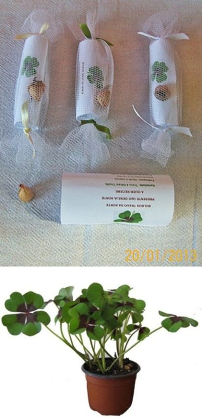Trevo de quatro folhas: quem não gostaria de ter sorte o ano inteiro? Aqui a proposta é levar uma semente para casa, plantá-la e colher trevinhos por muito, muito tempo!