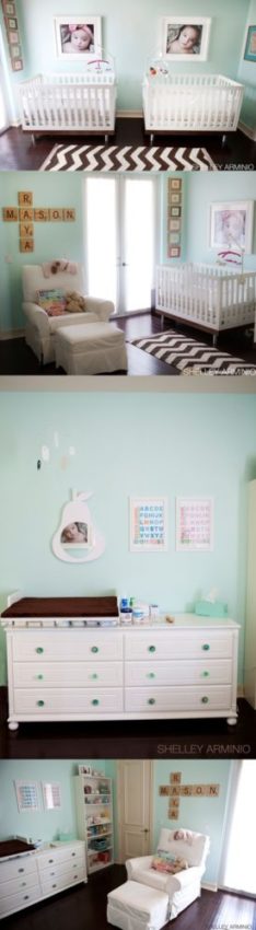 Se a decoração de um quarto de bebê já é um desafio para as mães mais perfeccionistas, imagino como deve ser quando se está grávida de gêmeos. É preciso otimizar os espaços, para que um segundo berço seja colocado. E quando é um menino e uma menina? Obviamente a composição fica ainda mais difícil, especialmente se a mãe optar por não usar os chamados tons neutros (amarelo, bege, verde). Mesmo assim é possível usar o azul, o rosa, o lilás e o vermelho com harmonia, ou partir para um quarto de casal de gêmeos bem colorido (o que, pessoalmente, eu acho muito mais interessante!).