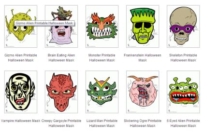 Na Squidoo há 150 opções de máscara, de todos os tipos (algumas de dar medo mesmo, de tão feias!). Mas há outras mais meiguinhas e que estão super dentro do tema, como essas daqui:
