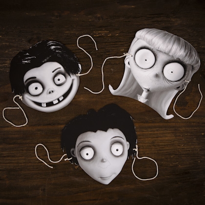 Já o site Spoonful disponibilizou máscaras do filme de Tim Burton Frankenweenie. Achei muito fofas!