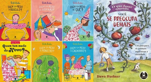 – ler livros sobre o tema adequados para sua idade, de forma natural (como você leria qualquer outra história). Algumas boas indicações de livros são a coleção “Quem tem medo de quê?”, da Ruth Rocha, e “O que fazer quando você se preocupa demais”, que eu mostro abaixo: