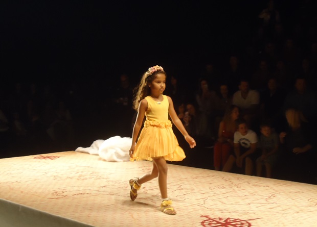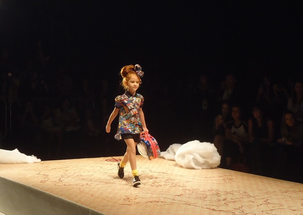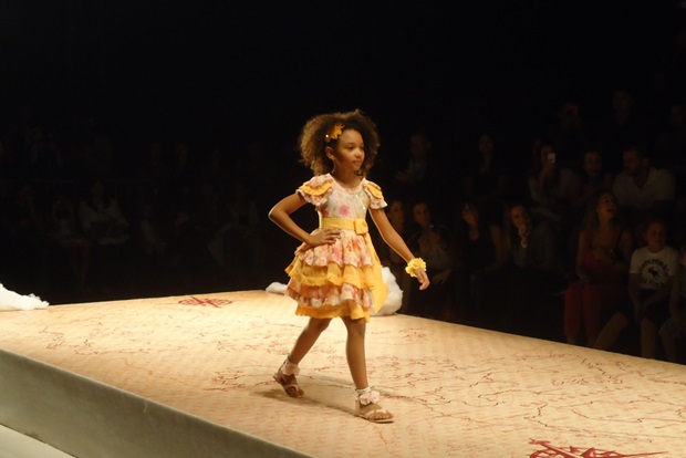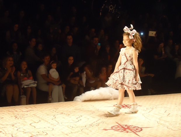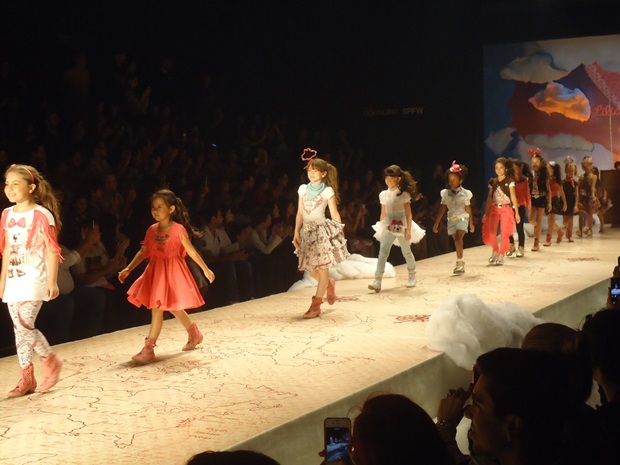 O convite que recebemos era para conhecer a próxima coleção de verão da Lilica Ripilica. Sentada na segunda fileira em uma cadeira com uma linda almofadinha da personagem – que fez Catarina pirar quando recebeu – nossa correspondente captou alguns momentos do desfile, com menininhas graciosas (algumas literalmente profissionais – no seu oitavo ou nono desfile -, outras aparentemente meigas convidadas que acenavam para os pais babões que estavam na plateia). Reparem na super produção (com direito a nuvens na passarela!) e nas roupas leves, meigas, que pareciam flutuar (se a ideia era remeter ao céu, acho que os estilistas conseguiram!).
