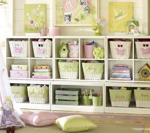 Estantes são sempre bem-vindas! Se tiver casulos onde você possa colocar cestas e que sirvam de suporte para os livros, melhor ainda!