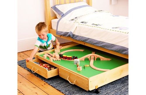 Que tal colocar os trilhos de trem sob a cama do filhote?
