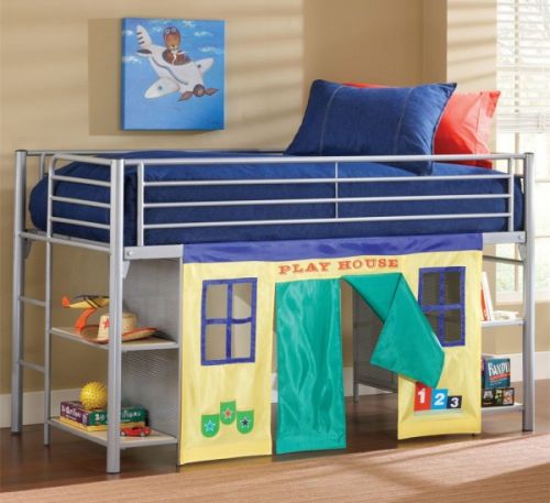 Uma cama que agrega duas pequenas estantes e ainda funciona como casinha? Sim, é possível!