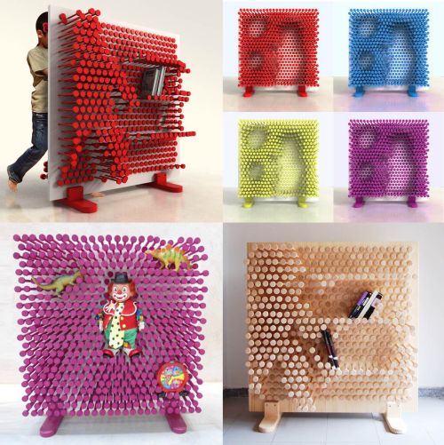 Essa é para quem pode gastar: uma estante design vendida na Europa, onde os pinos podem ser movidos para dar a forma que você (ou melhor, seu filho!) desejar! Se você tiver 2.000 Euros para gastar! Fica a ideia para algum fabricante brasileiro se inspirar!