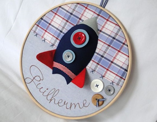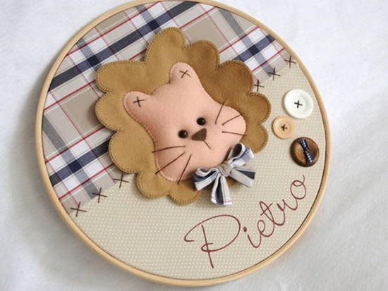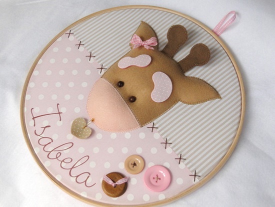 Portas de maternidade de bastidor, feitas em tecido e feltro, à venda na Elo 7. Por Débora Radtke.