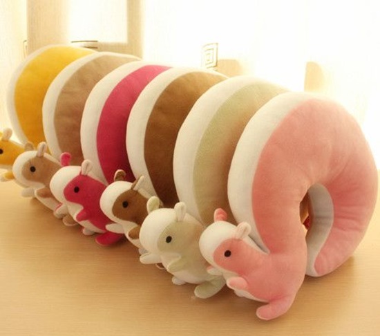 Almofadas de pescoço no formato de esquilos, à venda na Ali Express.