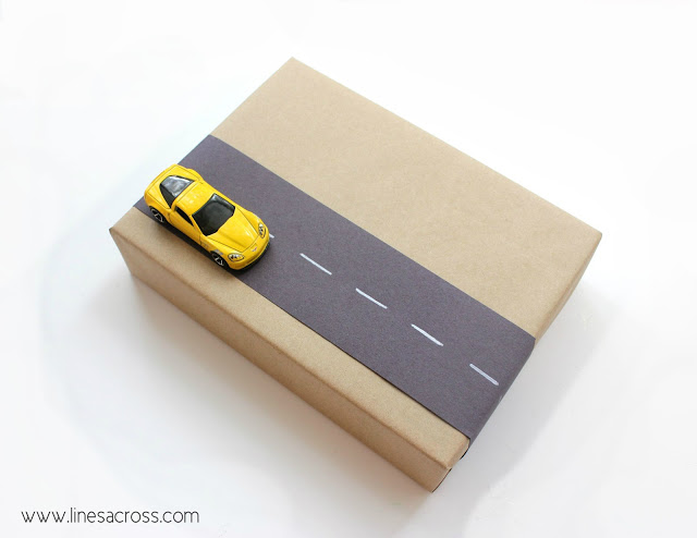 Coloque uma faixa de papel mais escuro, pinte a estrada e coloque um carrinho. Demais!