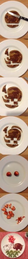 Se você quiser, ofereça junto com frutas, fica uma delícia! E como prometido, veja só como fazer um elefantinho de panqueca!
