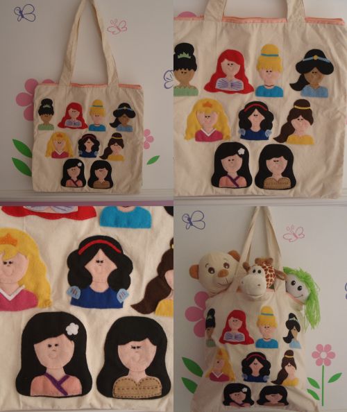 Eu sou suspeita para falar sobre essa história de princesa. Cresci assistindo aos desenhos animados, sabendo os nomes de todas as personagens, brincando de colocar vestidos… Acho que toda menina tem o direito de, se quiser, embarcar nesse sonho. Algumas de nossas leitoras pediram ideias para montar um quarto de princesa para a filhotinha. Por isso hoje eu mostro meus melhores achados de comprinhas na internet para decorar um quarto digno de uma princesinha! Para começar, algo bem prático: que tal guardar os brinquedos dentro de bolsas que podem ser penduradas na parede? Essa aqui, toda bordada à mão, é da Chantilly, e pode ser usada para um passeio ou na execução dessa ideia.