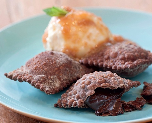 Ravióli de brigadeiro: a massa leva farinha de trigo, ovos e chocolate em pó. O recheio é de brigadeiro tradicional. Junte as duas coisas e tenha uma sobremesa que impressiona qualquer um! Aprenda a fazer com essa receita.