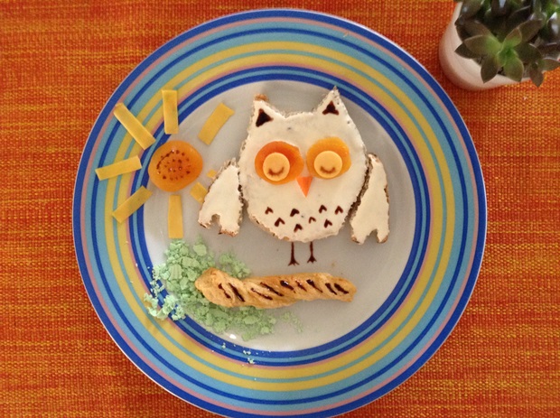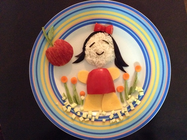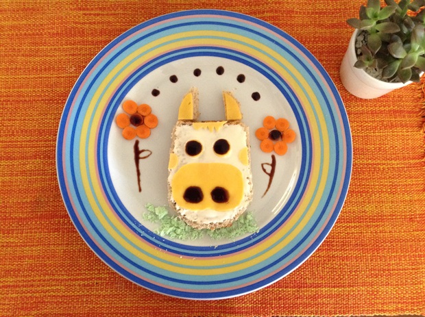O desafio passou então a ser reintroduzir alguns alimentos de forma mais “amigável” em nossa dieta. Cá entre nós: dependendo de como é preparada, nem eu tenho vontade de encarar a abobrinha! Então não daria para esperar uma receptividade muito grande da pequena! Como eu sou uma pessoa muito visual para comida (literalmente eu devoro primeiro o prato com os olhos), achei que a saída seria investir na apresentação do que fosse servido. E não é que está dando um resultado muito interessante? Catarina fica curiosa para provar alimentos de que ela nem se lembra, só porque estão sendo mostrados de uma forma divertida. E eu descobri que a tática funciona bem também comigo! Assim as frutas que eu não tinha muita vontade de comer estão pouco-a-pouco sendo aceitas pelo meu paladar. A seguir eu compartilho com vocês alguns dos pratos que criei para essa nova fase alimentar da nossa casa. Espero que gostem! Eles são compartilhados no Instagram do nosso blog, e você poderá acompanhá-los por lá sempre que algo divertido for criado. Será um prazer ter você nos acompanhando lá também: http://instagram.com/mildicasdemae.