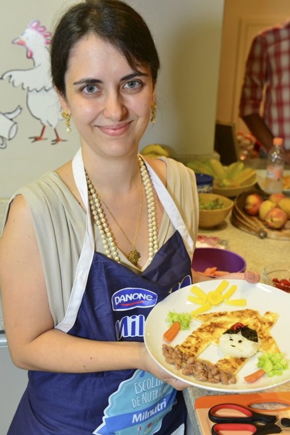 Depois do bate-papo com a nutricionista foi a minha vez de falar sobre a alimentação de Catarina, e mostrar ao vivo e a cores um dos pratinhos que fiz para Catarina em um esforço para que ela se alimentasse de forma mais saudável. Eu costumo dizer que acredito que qualquer mãe pode tornar a alimentação do filho mais atrativa, sem que seja necessário um talento especial para isso. O mais legal foi ver isso na prática, pois, depois de demonstrar algumas técnicas que uso, cada blogueira convidada fez sua criação, uma mais linda do que a outra!