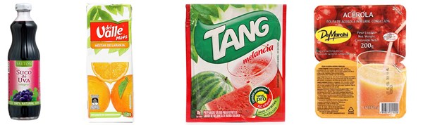 Pelas normas de rótulo, os alimentos devem apresentar os ingredientes na ordem decrescente de quantidade em que aparecem (ou seja, aparece primeiro aquele que compõe o produto em maior quantidade, indo até o aquele presente em menor parte). Por isso, repare como no refresco há muitos outros ingredientes antes de qualquer menção à fruta!