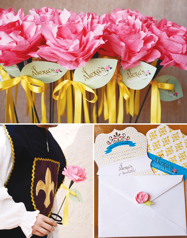 Os convites apresentam o selo de uma rosa e foram entregues por um guarda da côrte (uau!).