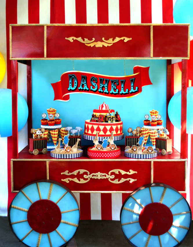 A mesa do bolo é um vagão da companhia do circo.