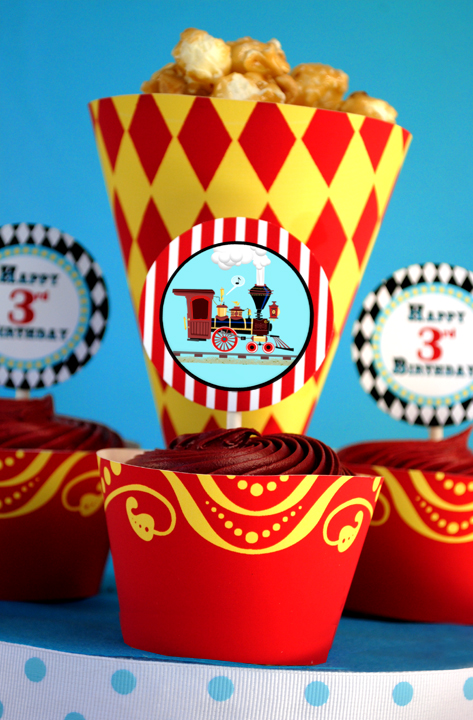 Usando o amarelo e o vermelho, as fôrmas de cupcake e as caixinhas de pipoca saltam aos olhos.