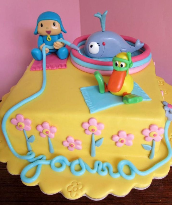 Diferente da maioria dos bolos que você vai encontrar do Pocoyo, esse é quadrado e mostra os personagens fazendo a maior farra com uma piscininha! Da Casa de Legos