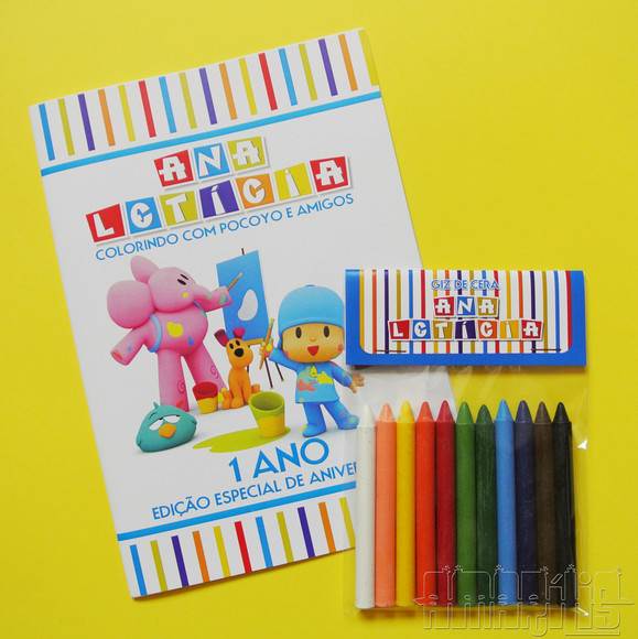 Melhor lembrancinha: que tal bloquinhos para colorir com o tema da festa e personalizados com o nome do aniversariante? Da Amarílis Atelier.