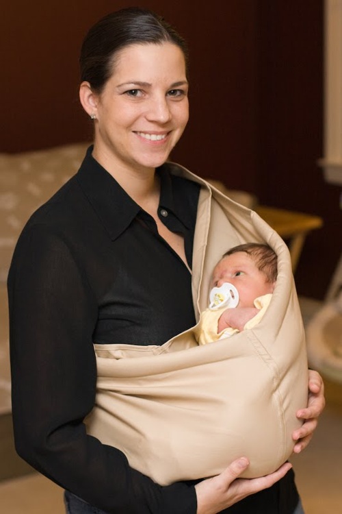 – Com o sling, o bebê fica em contato direto com o corpo da mãe (e do pai, claro, porque ele também pode usá-lo), o que o acalma. Dentro do sling o pequeno ouve as batidas do coração da mãe, que é um dos sons familiares a ele; também sente o cheiro da mãe, que aprende a reconhecer logo que nasce. Dessa forma, ele sente que aquele é um ambiente seguro.