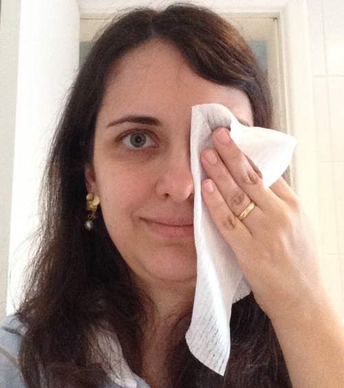 Os lenços umedecidos de bebês são excelentes para tirar maquiagem! Verdade! Já testei várias vezes e funciona! Ultimamente tenho achado mais prático usá-los do que comprar um demaquilante (que uso tão raramente, que acaba vencendo). Embora Catarina não use mais fraldas, um pacote de lencinhos umedecidos eu sempre tenho (sabe aquele dia em que você sabe que o filhote vai capotar no carro voltando de um passeio e que não vai acordar para tomar banho em casa? É justamente para esses momentos que mantenho os lencinhos em casa – passo no corpinho para tirar a sujeira mais grossa e dar banho na manhã seguinte).