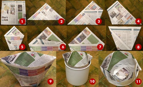 Se você decidiu abraçar de vez a ideia de diminuir a quantidade de sacolas plásticas em uso (e por isso não vai comprar sacos de lixo para substituí-las), uma boa dica é utilizar jornal para fazer seus próprios saquinhos. Considerando que o jornal do dia anterior vai para o lixo mesmo, é mais uma oportunidade de fazer reciclagem em casa.