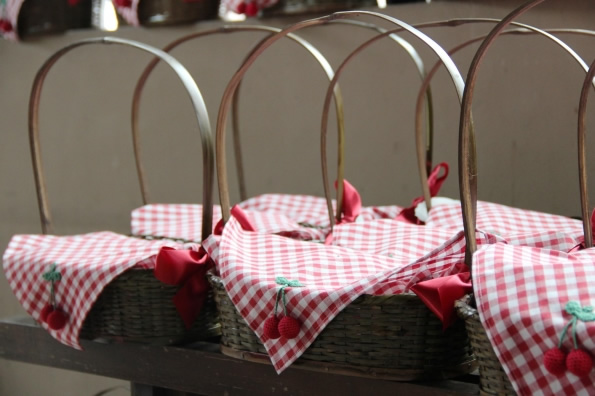 Detalhe da cestinha de Pic Nic em cima do bolo